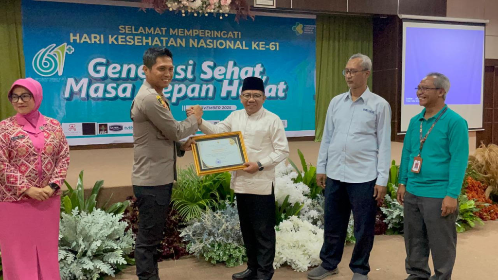 Kepala Kepolisian Resor Lombok Utara AKBP Agus Purwanta, S.I.K. bersama Ketua Bhayangkari Cabang Lombok Utara Ny. Heny Agus Purwanta menerima penghargaan dari Bupati Lombok Utara Dr. H. Najmul Akhyar atas kontribusi aktif keduanya dalam pelayanan kesehatan masyarakat. Penghargaan tersebut diserahkan pada puncak peringatan Hari Kesehatan Nasional (HKN) ke-61 yang digelar di Aula Segara Anak RSUD Lombok Utara, Rabu (12/11/2025).
