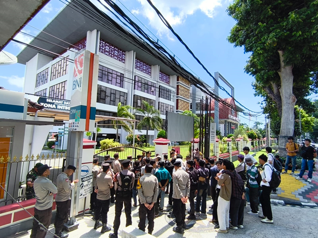 Kapolsek Selaparang Pimpin Langsung Pengamanan Aksi Unjuk Rasa BEM Nusantara di Depan Kejati NTB