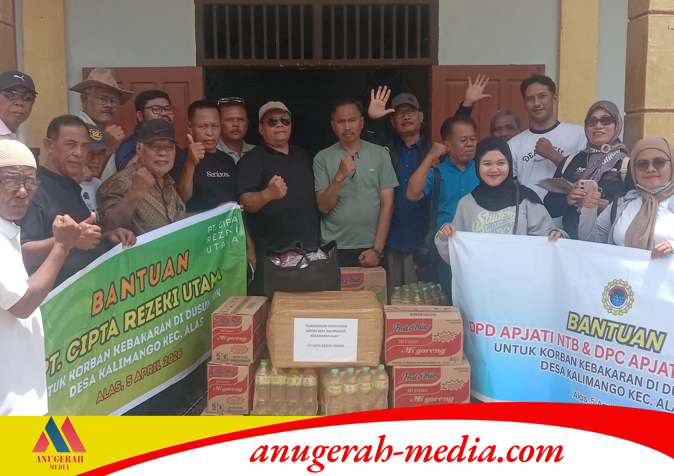 Wujud nyata rasa kepedulian terhadap sesama ditunjukkan oleh Asosiasi Perusahaan Jasa Tenaga Kerja Indonesia (APJATI) Nusa Tenggara Barat Bersama DPC APJATI Kabupaten Sumbawa menyalurkan bantuan kepada korban kebakaran di Desa Kalimango, Kecamatan Alas, Kabupaten Sumbawa Minggu (5/4/2026).