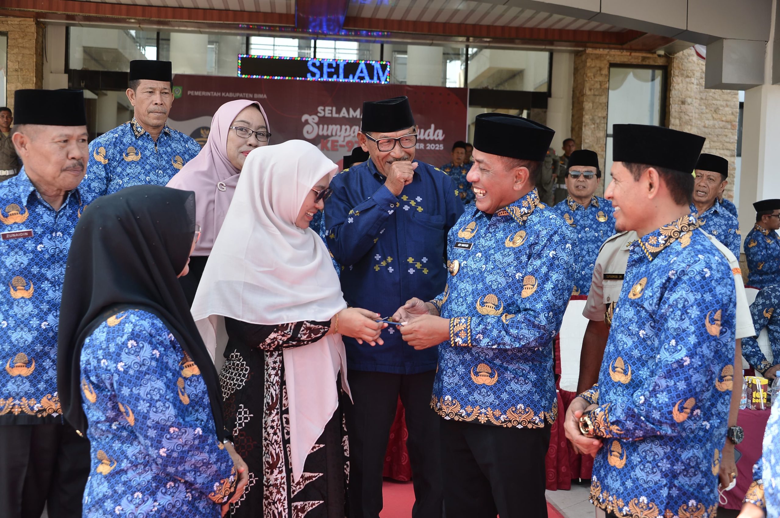 Penyerahan hadiah dilakukan bertepatan dengan peringatan Hari Sumpah Pemuda ke-97 Tingkat Kabupaten Bima yang digelar di halaman Kantor Bupati Bima. Hadir mendampingi Bupati, Wakil Bupati Bima dr. H. Irfan Zubaedy, pejabat struktural dan fungsional lingkup Pemkab Bima, serta para peserta upacara.