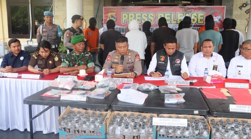 Secara keseluruhan, dari delapan kasus tersebut, diamankan 13 orang tersangka dengan total barang bukti sabu 74,57 gram dan uang tunai Rp9.890.000.Pada kesempatan tersebut Polres Bima juga melaksanakan kegiatan pemusnahan barang bukti Narkotika Gol I jenis Shabu dari 17 kasus sejak bulan September hingga Desember 2025 sebanyak 170 gram serta Miras sebanyak 1.750 botol.