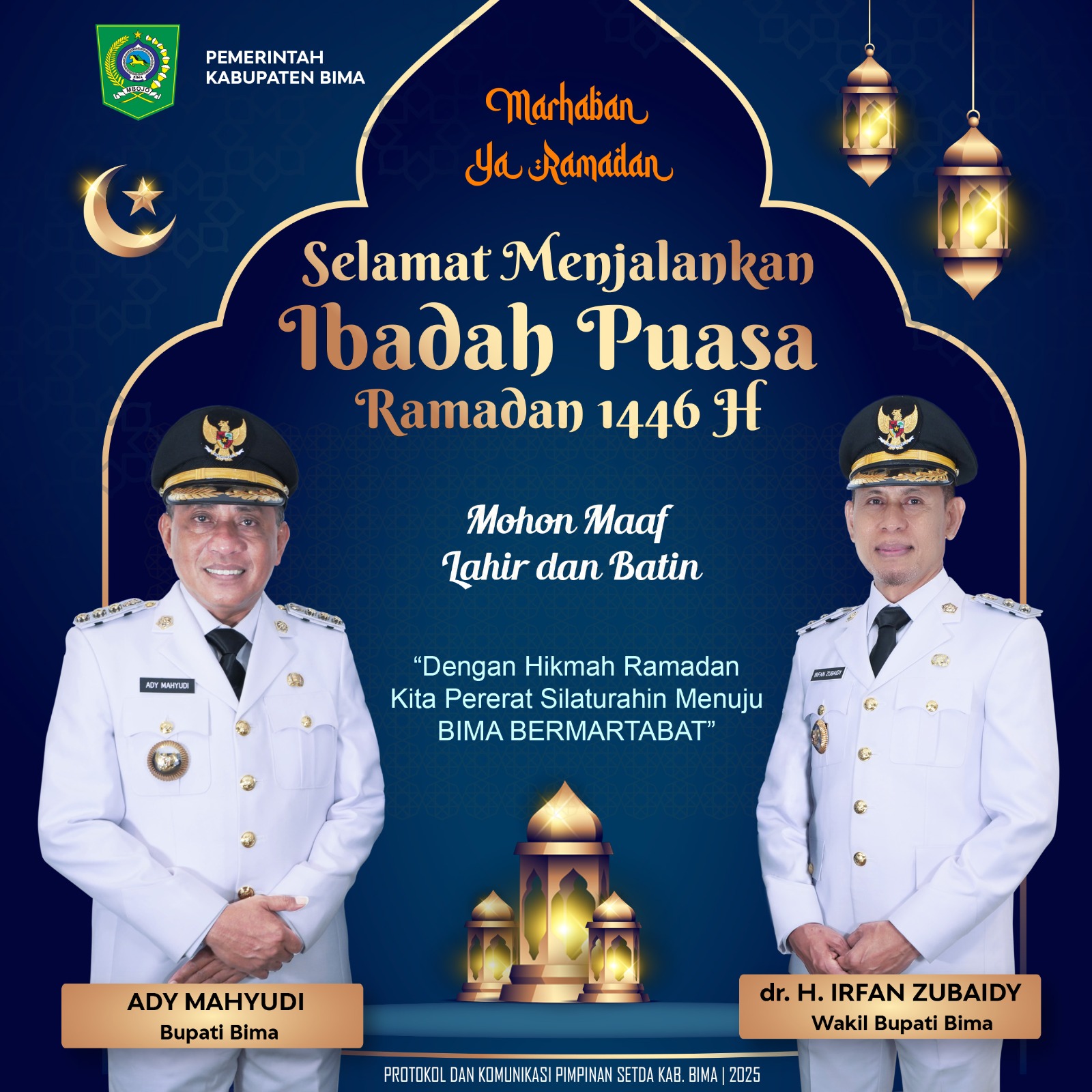BerandaBima Bima Pemerintah Kabupaten Bima Mengucapkan Selamat Menjalankan Ibadah Puasa 1446 H/2025 M By admin AMS 2 Maret 2025 0 11 FacebookTwitterPinterestWhatsApp Bagikan FacebookTwitterPinterestWhatsApp Artikulli paraprakWali Kota Bima dan Wawali Bima Buka Festival Ramadhan 1446 HArtikulli tjetërYayasan Pedidikan SLB Al-Hijrah, SDLB-SMPLB-SMALB Desa Oi Tui Wera Menjamin Anak Bangsa admin AMS Related Articles Opini ZERO WASTE ; Cara Terbaik Mengelola Sampah Sumbawa Dikes Sumbawa Perkuat Pengawasan SPPG untuk Jamin Keamanan Pangan Mataram Polda NTB Matangkan Pengamanan Mandalika Racing Series 2026 TINGGALKAN KOMENTAR Batal membalasLogin untuk meninggalkan komentar Stay Connected0FansSuka0PengikutMengikuti0PelangganBerlangganan - Advertisement - Latest Articles Opini ZERO WASTE ; Cara Terbaik Mengelola Sampah Sumbawa Dikes Sumbawa Perkuat Pengawasan SPPG untuk Jamin Keamanan Pangan Mataram Polda NTB Matangkan Pengamanan Mandalika Racing Series 2026 Mataram Kapolresta Mataram Tekankan Komitmen dan Disiplin Personel dalam Apel Pagi Sumbawa Dua Pelajar SMAN Alas Barat Lolos di University Luar Negeri Muat lebih banyak