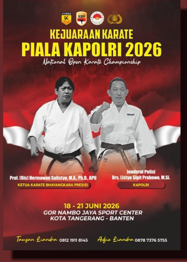 Aroma persaingan panas bakal terasa di atas tatami, saat Kejuaraan Nasional Karate Piala Kapolri 2026 digelar pada 18–21 Juni 2026 mendatang, bertempat di GOR Nambo Jaya Sport Center, Kota Tangerang-Banten, yang nanti nya akan menjadi saksi lahirnya juara juara baru.
