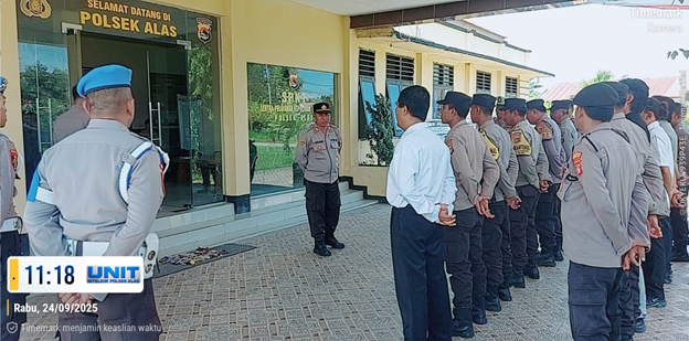 Hadir juga Kapolsek Alas Kompol Satrio SH, Kapolsek Alas Barat, AKP Sugianto, Kapolsek Buer Iptu Totok Suwondo SH, Kanit Lantas IPTU Herman Sima. S.Sos, Panit Binmas IPDA Made Aryoka, Kanit Propam AIPTU Ugeng Harianto, Para Kasium Polsek, Kanit Intelkam Polsek, Kanit Reskrim Polsek, Para Kanit SPKT Polsek, Anggota Polsek Alas, Alas Barat dan Buer, Kegiatan berlangsung pada pukul 11.00 WITA
