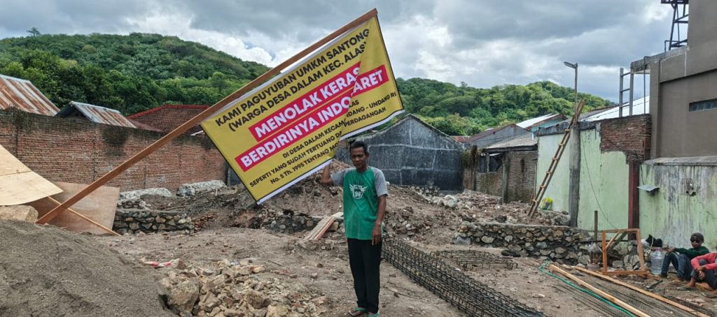 Penolakan berdirinya toko retail Indomaret di wilayah dusun Santong oleh panguyuban UMKM memiliki dasar mengingat di lokasi tersebut di kelilingi oleh UMKM lokal seperti toko dan kios Ulas Dedy Raharjo sembari melanjutkan kenapa harus di bangun di lokasi ini ada apa tanya Dedy sapaan akrabnya padahal indomaret dan alfamart banyak di tempat lain di wilayah kecamatan Alas kenapa harus bangun di sini, ini pertanyaan besar dari kami.